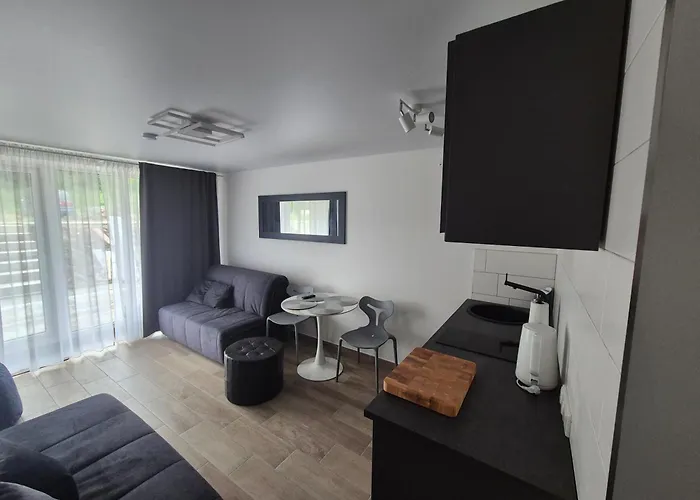 Om van uw vakantie in Palanga te genieten, verblijf in Meguvos 9 - Modernus Studijo Apartamentai Palanga van 22 m², gelegen op slechts 1 km van Sventosios Svc. Mergeles Marijos juru zvaigzdes baznycia en binnen 17 minuten wandelafstand van de Vissersdochters. Wi-Fi en gratis privéparkeerplaatsen zijn beschikbaar voor de zakelijke of recreatieve behoeften van de gasten.